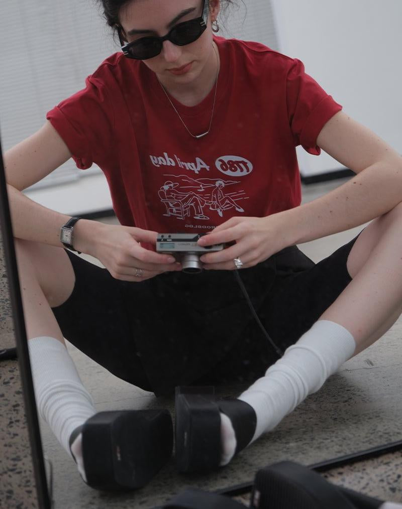 1786 April Day Graphic Basic T-Shirt / Red